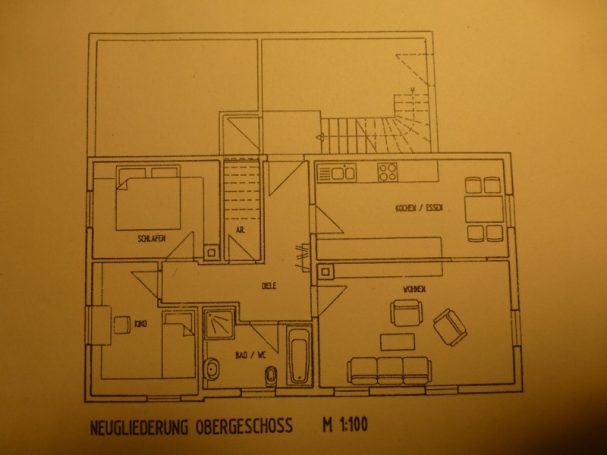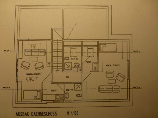 Nach dem Brand in 1996 wurde das Mehrfamilienhaus wieder aufgebaut. Aus dem Grund ist das neue Baujahr 1996. Eine Baugenehmigung und eine Baubeschreibung liegen nicht vor, weil das Haus 1996 für den Wiederaufbau nach dem Brand keine erneute Baugenehmigung erforderlich war. Daraus folgt das die Raumhöhe wie vorher in der EG-Wohnung 2,40m ist, und in der DG-Wohnung 2,15m.